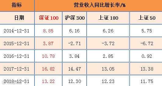深证100指数与其他指数成分股业绩对比