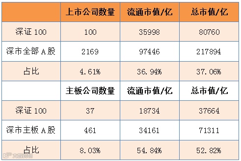 深证100指数市值占比统计