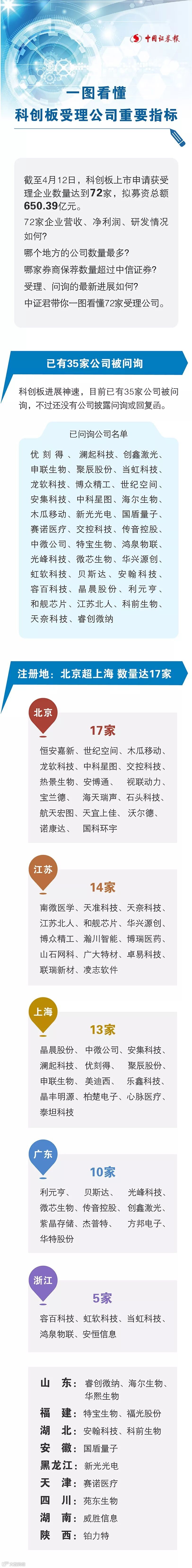 一图看懂72家科创板受理公司:拟募资总额超650亿,北京地区17家暂居首,已有35家公司被问询