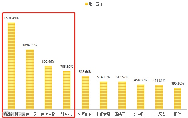28个申万一级行业近15年涨幅TOP10