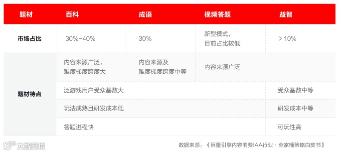 ① 传统答题类产品:百科题材最易切入,视频答题形式值得探索。