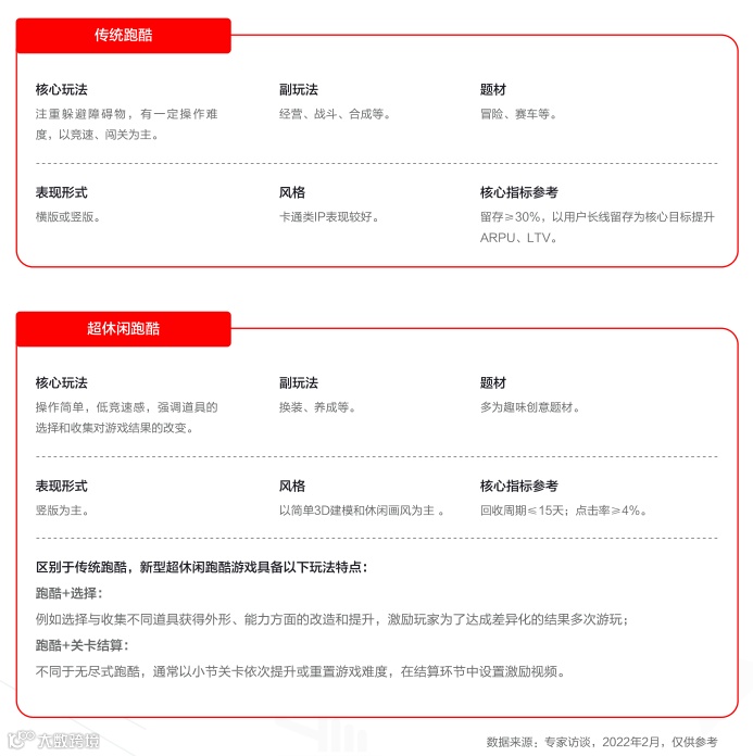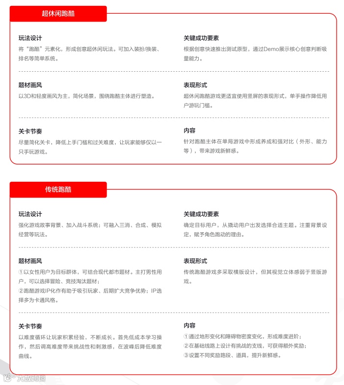 玩法扫描:传统跑酷主打避障及竞速难度,超休闲品类基于创意吸引泛用户。