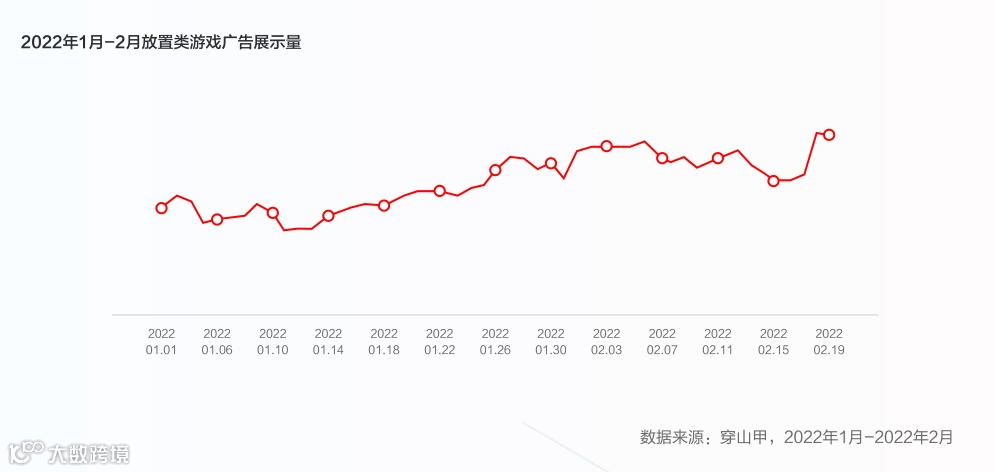 商业化能力:穿山甲数据显示,目前放置类游戏CPM为休闲游戏各品类Top 1,变现能力强。广告展示量呈现波动上涨趋势,广告变现空间较大。