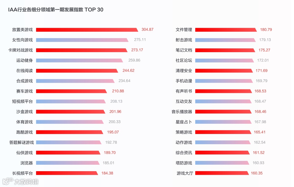 根据第一期IAA发展指数,休闲游戏、内容型品类两大领域在面临季节性利好的同时也表现出了长期增长能力,值得开发者重点关注。