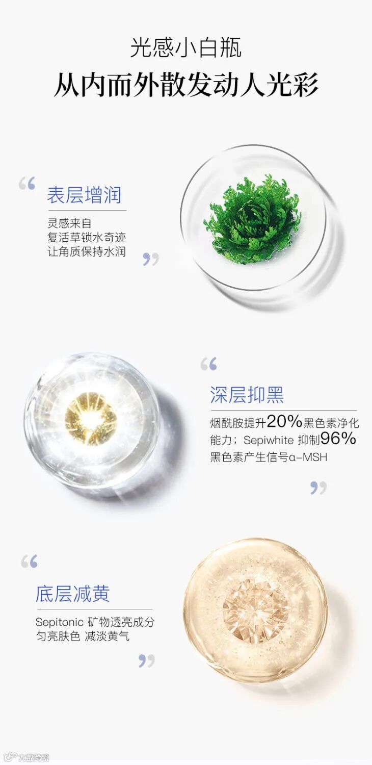 26年美白专研,开启OLAY抗糖减黄的新时代。第四代小白瓶的专利美白配方,让肌肤抑黑提亮、白里透光。