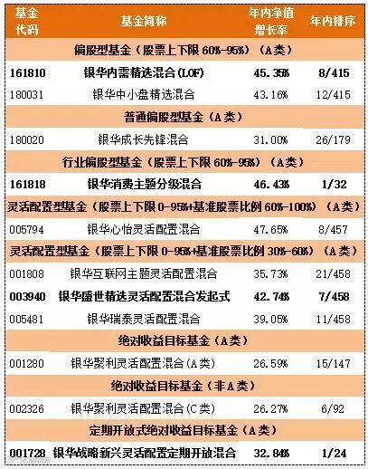 在规定的范围内,混合型基金可以灵活配置股、债市场。以银华基金投研团队强大的大类资产配置能力为后盾,旗下混合型基金也是星光熠熠。其中,银华消费主题分级混合、银华战略新兴混合排名同类第一;银华内需精选、银华中小盘精选、银华心怡等多只基金排名前1/10。