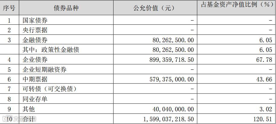 银华纯债基金的债券投资情况