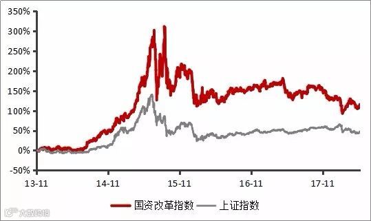 自2013年11月发布《关于全面深化改革若干重大问题的决定》以来,新一轮国企改革拉开序幕,相关指数自当时起至今上涨113.14%,同期上证综指仅上涨47.16%,国资改革指数相较大盘获得65.98%的超额收益。