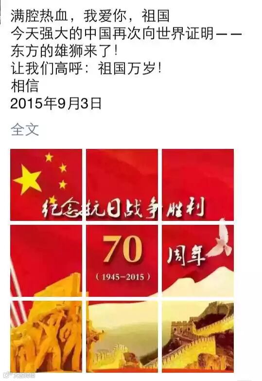 所以,老师,我就跟您如实汇报下我在朋友圈看阅兵是怎样的一种体验吧。