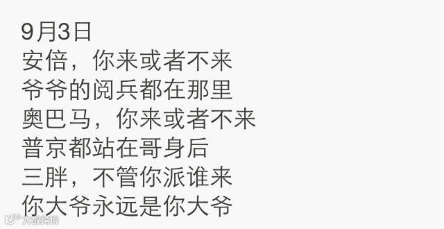 随着阅兵逐渐进入尾声,我在朋友圈里看到了下面这样一句话。