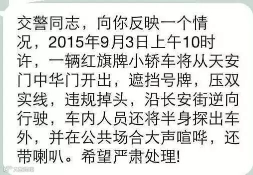 还有一些平日里开车吃罚单已经形成条件反射的胖友,我觉得他们一定是平时被罚怕了吧,看阅兵也能看出交通规则来。