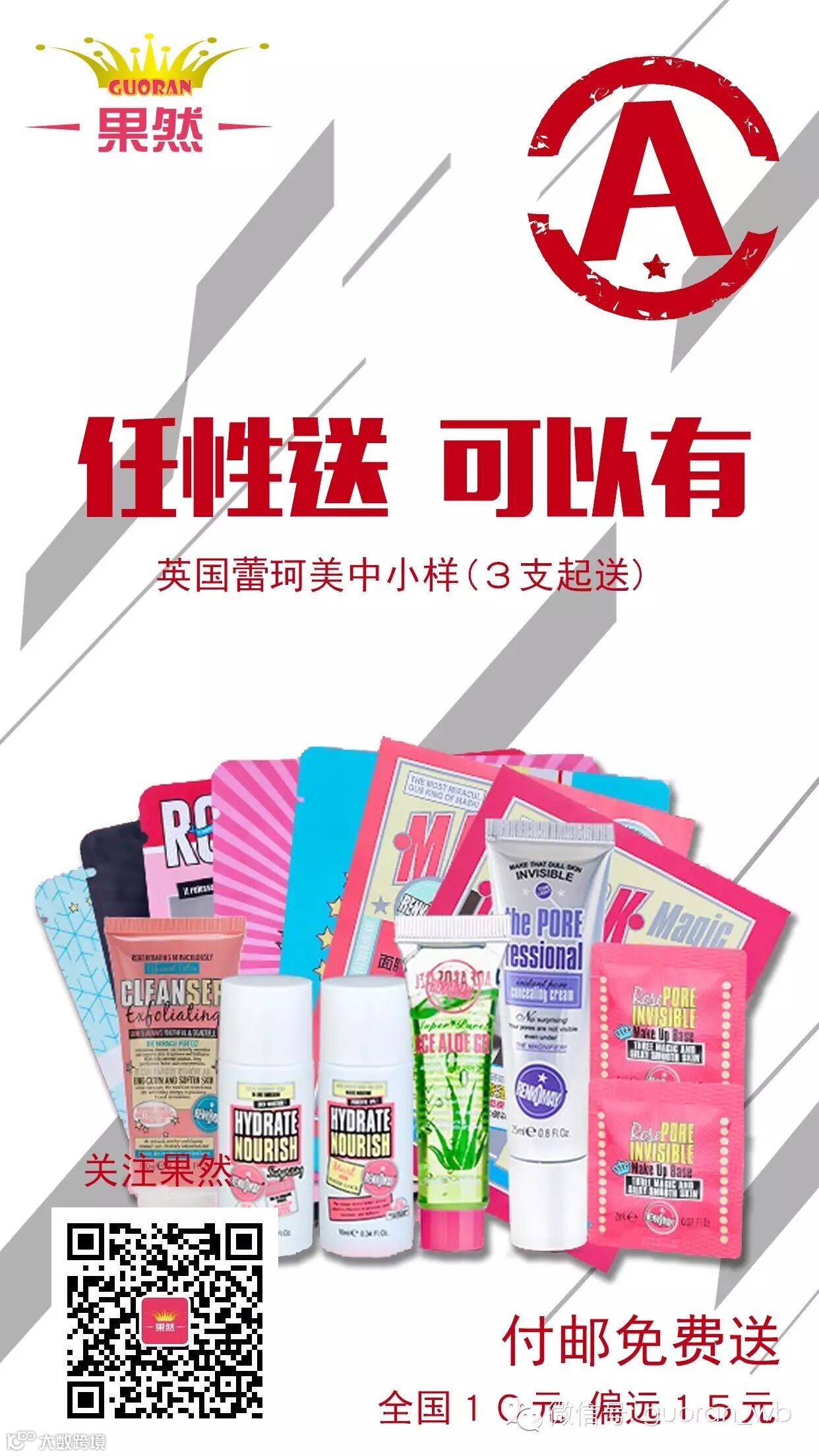 8月30日-9月30日关注果然公众号,再扫二维码添加果然红包客联系,告知地址与联系方式,付邮即可选择果然微商第一期免费提供的3款产品任选一;果然任选活动时时更新,送完为止,这得没时间了!
