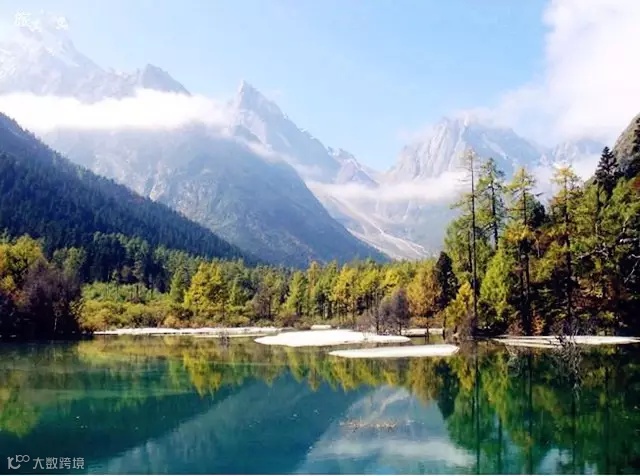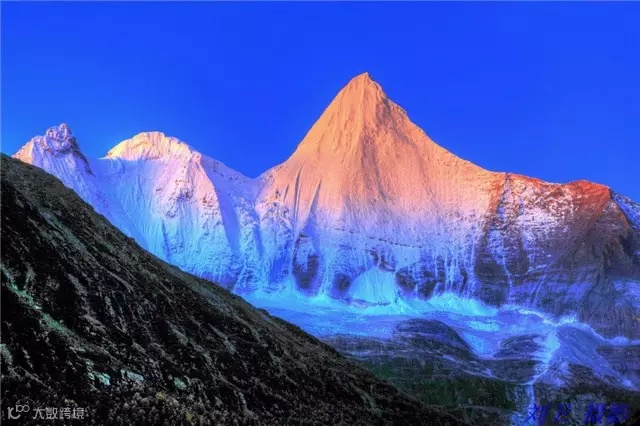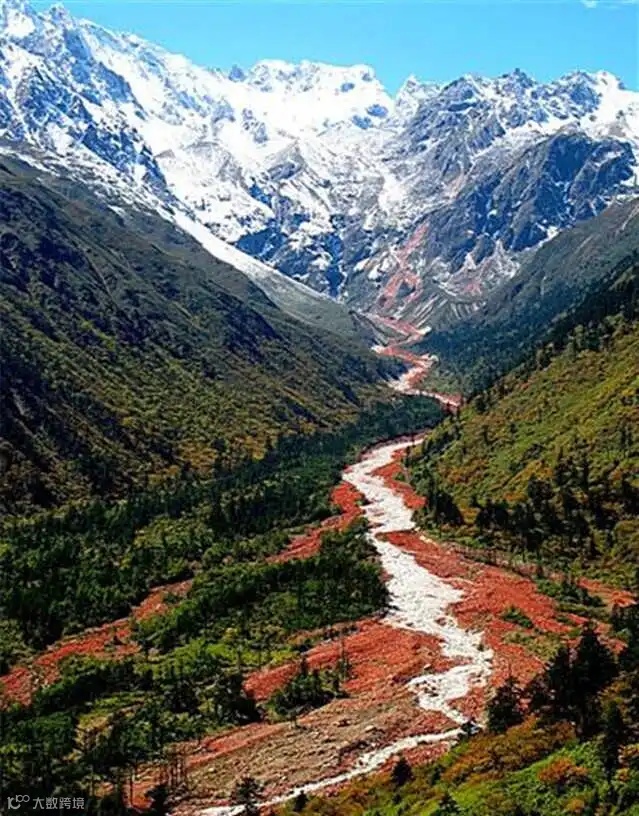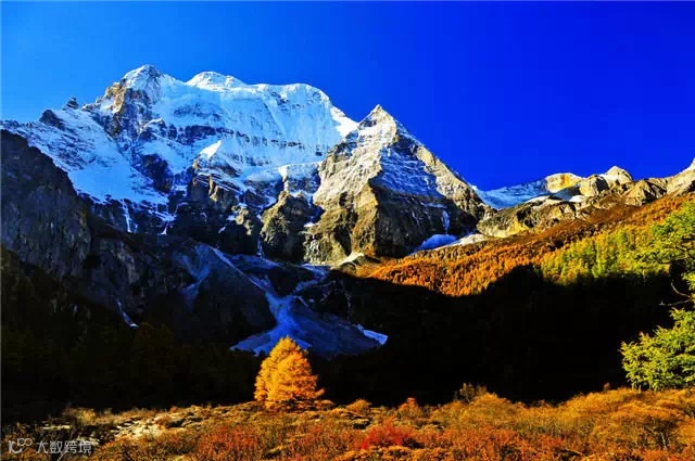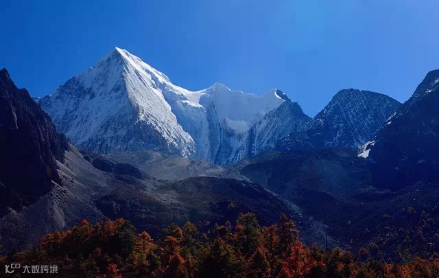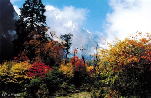 这是个五彩斑斓的世界,浓绿的树,深红的叶,青青的湖,湛蓝的天,纯白的雪;这是个多姿多彩世界,险峻奇峰,一道冰川,人间寺庙。