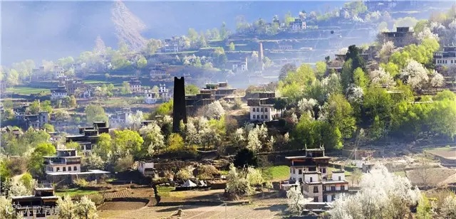 或星罗棋布,或稠密集中,或在高山悬崖上,或在河坝绿茵间,不时炊烟袅袅、烟云缭绕,与充满灵气的山谷、清澈的溪流、皑皑的雪峰一起,被评为“中国最美的六大乡村古镇”之首。