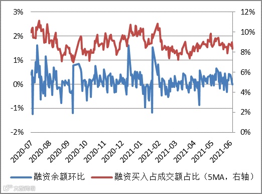 上周A股和海外权益市场表现都很好,标普、纳指创下新高;我们认为流动性预期的边际改善是关键的因素。虽然此前FOMC会议点阵图加息节奏有所加快,但周内联储主席鲍威尔和官员发言维持通胀是暂时性的,联储不会先发制人地加息。欧洲央行行长拉加德更是表示,“若有需要,欧洲央行仍有空间下调利率”,显示全球货币政策当前仍以呵护经济恢复为主,利好权益市场。回到国内,北向资金重回净流入,周五出现单日140亿的大额单日净流入,是周内市场表现较强的重要支撑。但展望后市,我们认为不宜过度乐观,核心在于当前更多是对前期悲观预期的修复,长期看流动性收紧的大趋势没有变化,我们维持市场以震荡为主的观点,建议把握轮动中结构性机会。