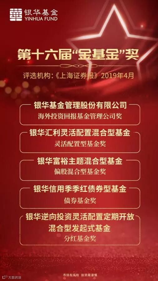 在公司类奖项中,银华基金获得了“海外投资回报基金管理公司奖”。同时,银华基金旗下四只基金产品也分别斩获四项不同类别的产品大奖,成为本届“金基金奖”最受关注的基金公司之一。