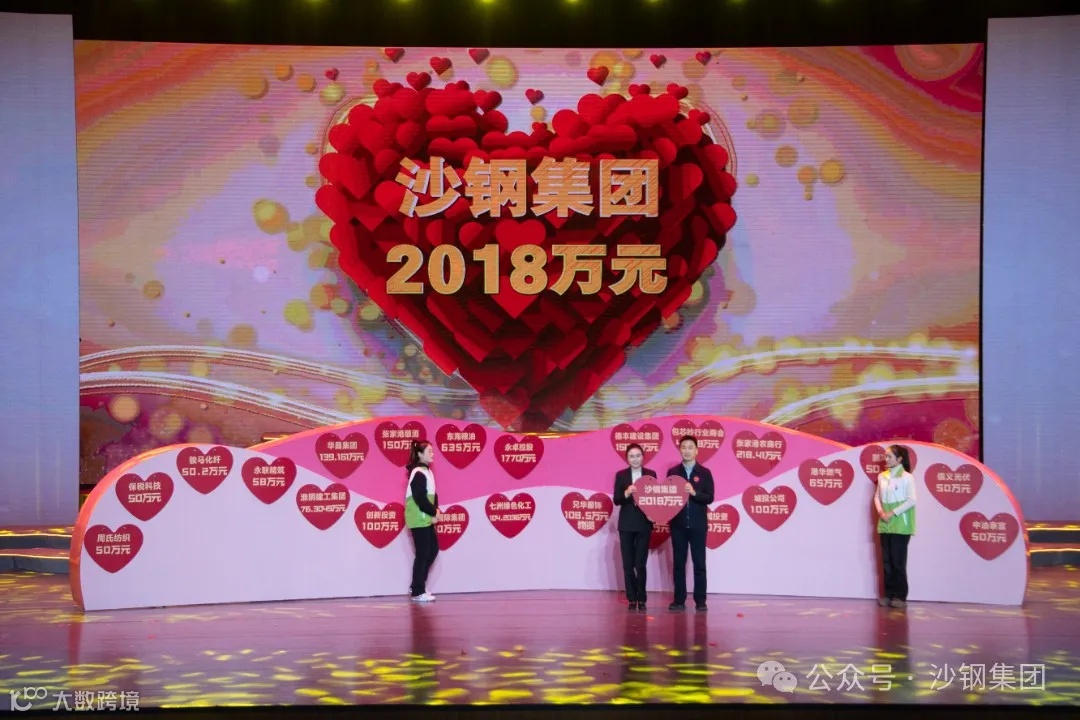 1月 “爱满港城”2024年张家港市新年慈善晚会上,沙钢荣膺“最具爱心慈善捐赠企业”,现场捐赠善款2018万元。