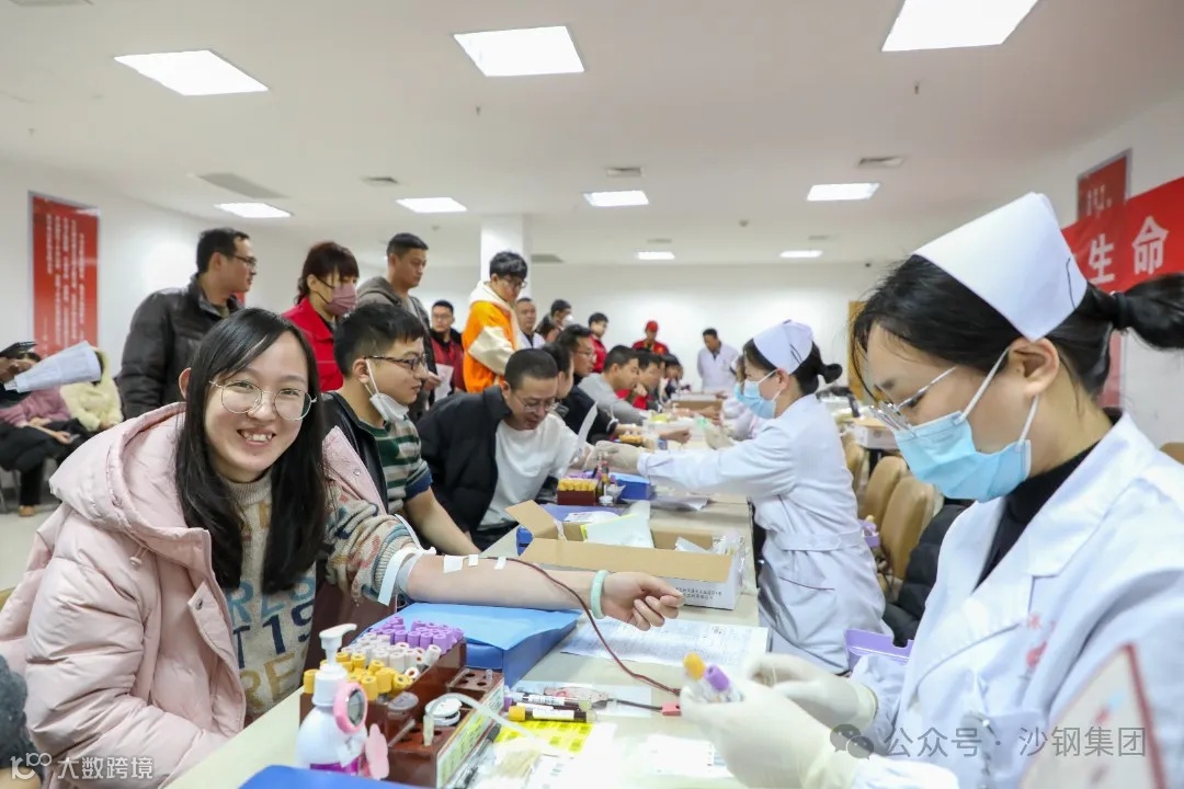 1月 沙钢组织开展献血活动,沙钢职工与职工家属积极响应,无偿献血总量超10万cc。
