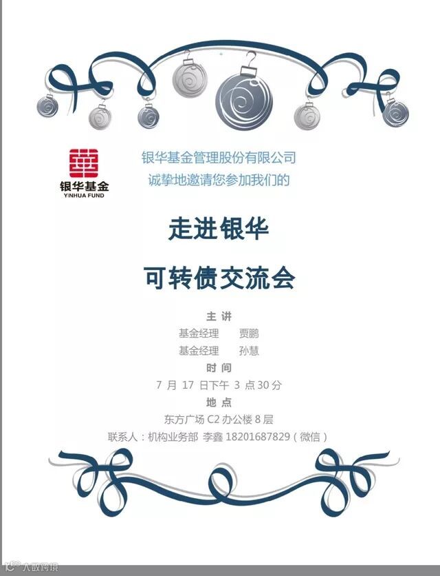 邀请 | 走进银华 可转债交流会(2018年7月17日)