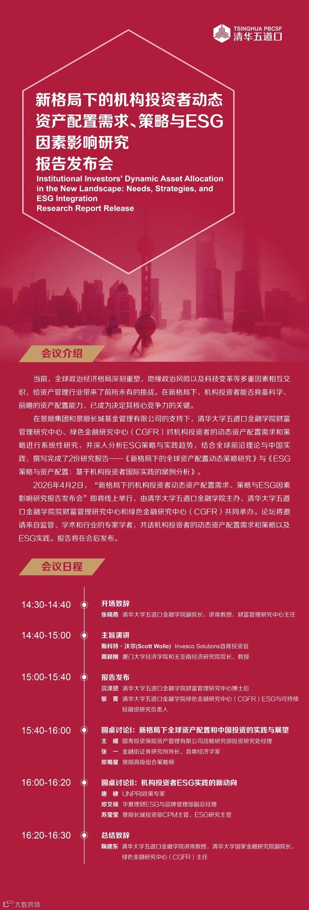 直播预告|清华大学新格局下的机构投资者动态资产配置需求、策略与ESG因素影响研究报告发布会