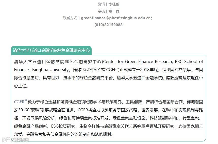 本文转载自清华大学五道口金融学院绿色金融研究中心CGFR