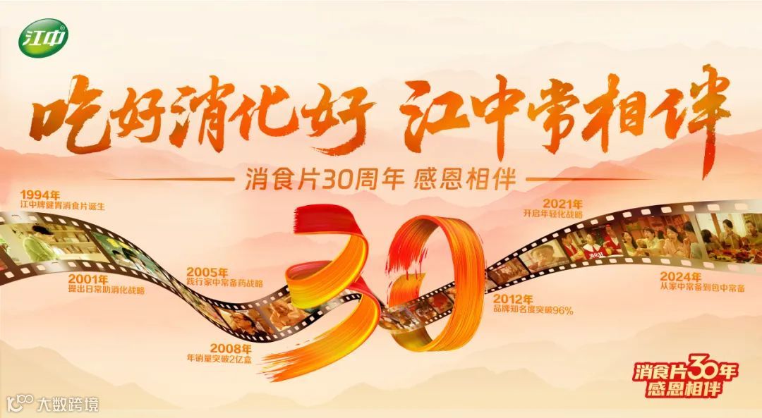 1994-2024年,从一个家庭走向千万家庭;从一个产品幻化为一个情感符号。正是这一个又一个相遇的故事,这千丝万缕的情感连结,组成了江中牌健胃消食片闪闪发光的三十年。这三十年间,江中牌健胃消食片从一颗萌芽的种子,逐渐成长为参天大树,这是时间的沉淀,更是岁月的礼赞。