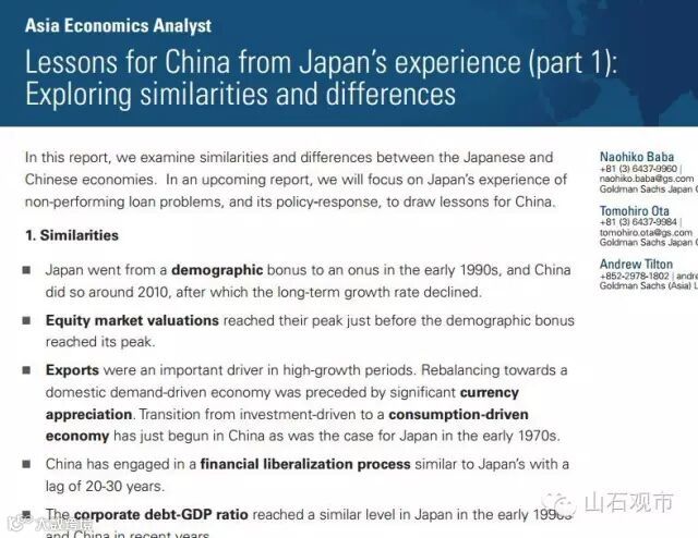 这就是高盛近期研报《Lessons for China from Japan’s experience》最大的借鉴意义,对比日本挖掘未来中国面临的风险和机遇。