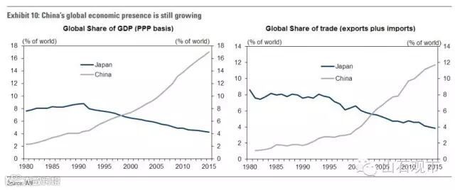 最大的差别在于,日本经济在全球影响力在其人口红利消失后快速下降,中国经济的全球影响力仍在增长;