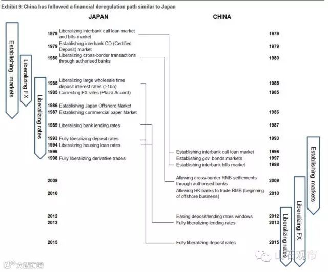 . 中国正在开展的金融市场化进程与日本颇为相似,只是滞后了20-30 年。