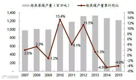 焦煤产量年均增速由高处迅速回落