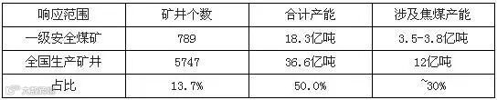 一级安全煤矿总产能及涉及焦煤产能