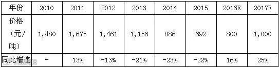 2008-2016年动力煤价格走势