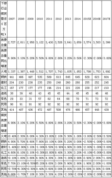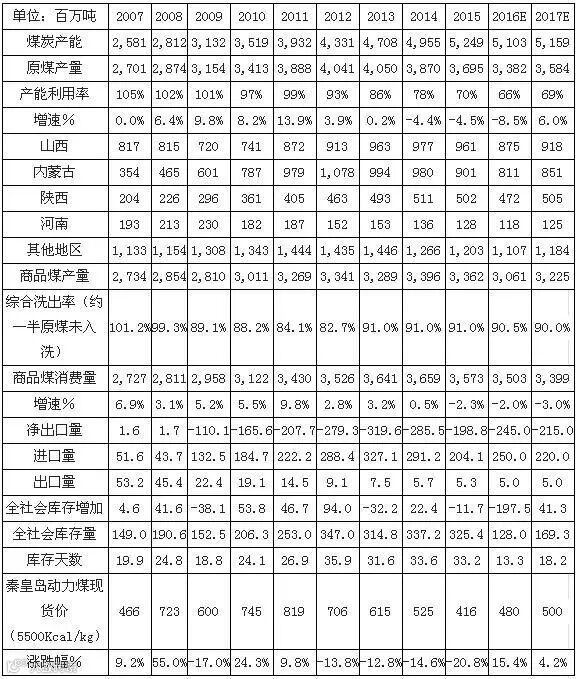 国内煤炭供需平衡表