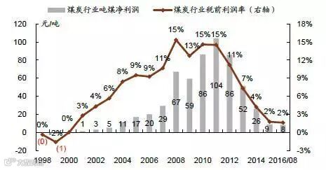 1998-2016年中国煤炭行业毛利分析