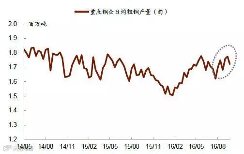 重点钢企日均粗钢产量(旬度)
