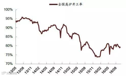 2013-2016年全国高炉开工率