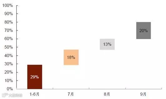 2016 年,国务院发改委制定的煤炭去产能任务量为2.5 亿吨,而1~6 月产能退出仅完成7,227 万吨,占比计划的29%。随后,去产能进度开始逐步提速,至9 月末,已完成全年计划的80%,而前8 个月去产能进度为60%。即9 月单月完成全年计划的20%,去产能进度维持高速,有望提前完成全年任务。