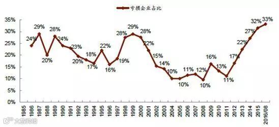 1985-2016年中国煤炭行业无损企业占比