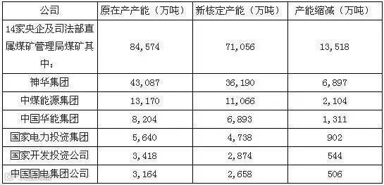 14 家央企及司法部直属煤矿管理局煤矿新核定产能