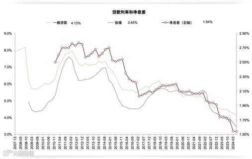 1)稳定的盈利和分红。2024年上半年在存在压力的经营环境下银行行业仍然实现了0.4%的正增长,尽管相比去年的3.2%有所下降但总体稳定,我们认为主要由于通过负债成本压降、债券投资收益贡献、存量拨备贡献等方式平滑周期波动,相比更加依赖于现金流的非金融行业,银行利润波动更小,仍能保持10%左右的ROE水平;尽管股价大幅上涨,银行股息率仍为5%左右,相比无风险收益率存在约300bp的溢价,相比电力、交运等传统高分红行业股息率更高,相比煤炭等行业股息更加稳定。2)对息差的呵护。24Q2银行净息差环比持平于1.54%,为2022年以来首次环比企稳。尽管后续由于降息、信贷需求较弱、存款定期化趋势,息差后续仍可能继续下滑,但从央行《货币政策报告》的相关表述来看对于银行的政策导向已并非单边“让利”。3)更可持续的信贷投放。从2023年四季度起央行对于信贷投放的导向出现变化,更加重视信贷投放的可持续性和效率,表现为引导信贷平滑波动、打击存贷套利等“资金空转”、地方金融GDP核算方式改革、引导银行降低“规模情结”,部分银行出于“冲量”原因“低贷高存”的现象得到明显缓解,有利于缓解银行息差压力。