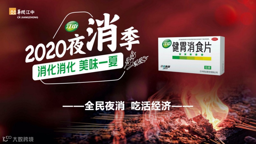自1994年上市,见证了中国人幸福生活的餐桌变迁,吃多了不消化,饭后嚼一嚼的江中牌健胃消食片成为了国内销量突破10亿大关的OTC单品,至今为止畅销26年,每年售出2亿多盒,连续16年蝉联中国非处方药产品综合统计排名消化类第1名。为助力复工复产,“地摊经济”繁荣,夏季夜宵美食盛行,也刺激了大众“助消化”的消费需求。江中牌健胃消食片积极拥抱年轻消费人群,让“尽享美食助消化”的广大需求在今年夏天促活地摊经济、夜宵经济,点亮大众的美好生活。