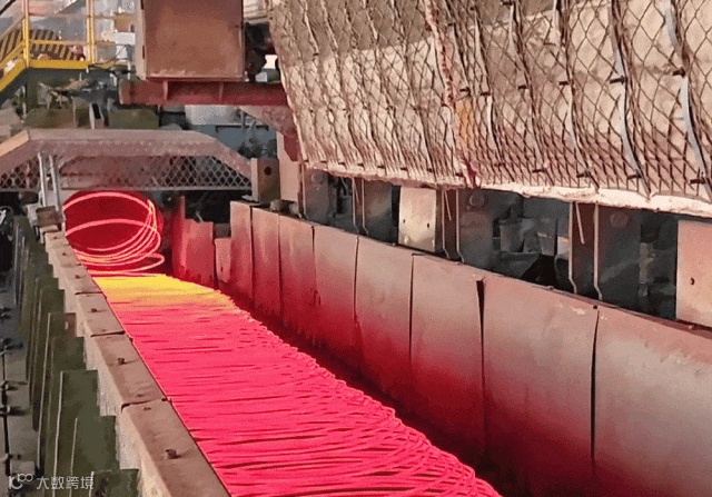 临近春节,沙钢线材生产现场依然一派火热,一圈圈火红的线材从吐丝机盘旋而出,一卷卷精细包装的成品整装待发……
