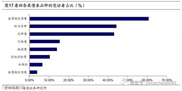 其次看好的是同业存单和利率债,看好者占比均在40%-50%。低等级信用债仍旧是投资者最不看好的债券品种,说明信用债预期分化加剧。