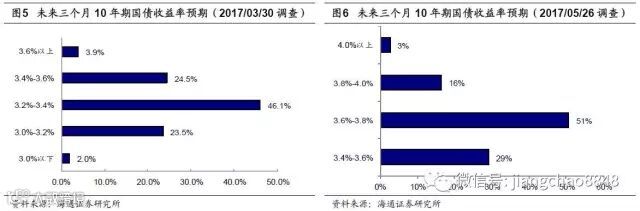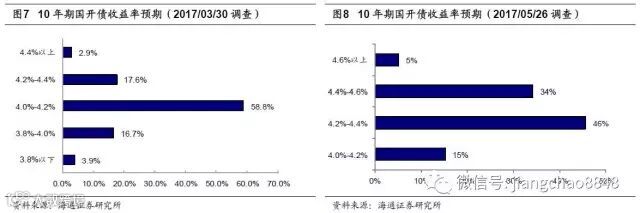 今年3月底10年国债收益率在3.27%左右,当时市场对国债利率上行还是下行还有不少分歧,目前10年期国债收益率已经抬升到在3.66%左右,较上一次调查时上行了接近40BP。