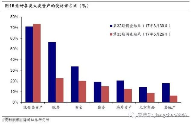 美国加息、货币政策收紧成为投资者第二关心的风险点。此外,金融去杠杆收缩信用创造、企业融资环境收紧,而4月经济数据疲态渐显,投资者对信用风险也较担心。最不担心的风险点为股市走强和通胀。