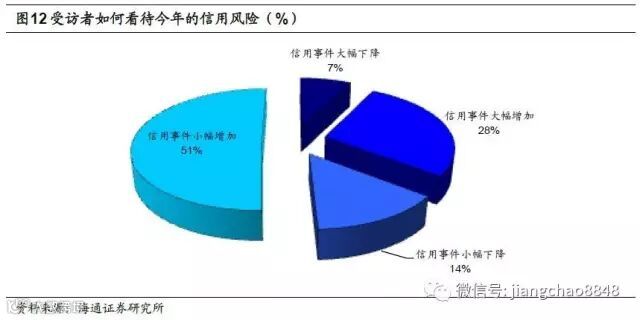 信用事件增加是大概率事件。对于今年信用风险走势的预期,80%受访者认为今年信用事件会增加,其中有51%的受访者认为今年“信用事件小幅增加”,有28%的受访者认为“信用事件会大幅增加”。此外,有14%的受访者认为“信用事件小幅下降”。