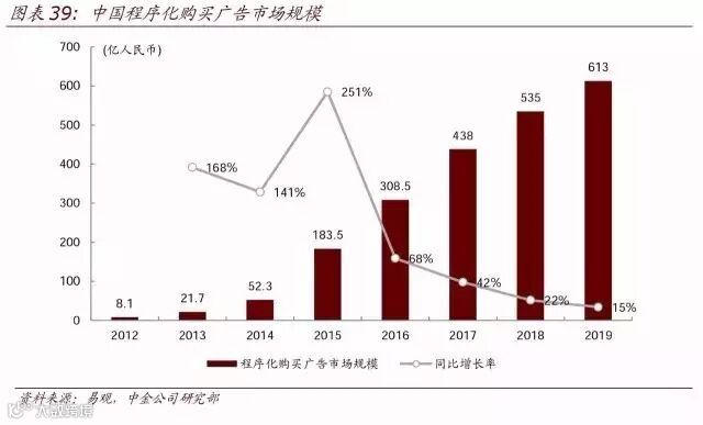 程序化购买广告是一种基于 AI 自动化技术和大数据,将广告主的具体广告请求对具体的 广告位(而不是单一媒体)进行智能投放的互联网广告交易模式。其中,大数据是程序 化购买的基础,AI 自动化技术是实现高效的手段。程序化购买广告市场在过去两年获得 井喷式发展,到 2016 年已达到 308.5 亿元,这其中还不包括头部流量平台的自有程序化 交易体系(这部分收入已经包含在平台广告收入当中)。