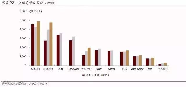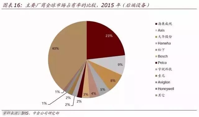 我们认为,一方面受益于中国视频监控行业规模在全球占比较高,另一方面,中国龙头 公司的技术和产品的竞争力有了极大的提升。我们预计,这种趋势仍会保持,中国龙头 公司的全球市占率将继续提升。