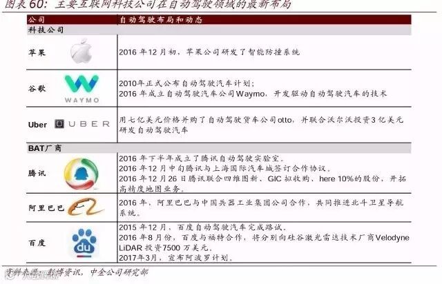 主要车厂加快自动驾驶布局,互联网科技公司积极切入