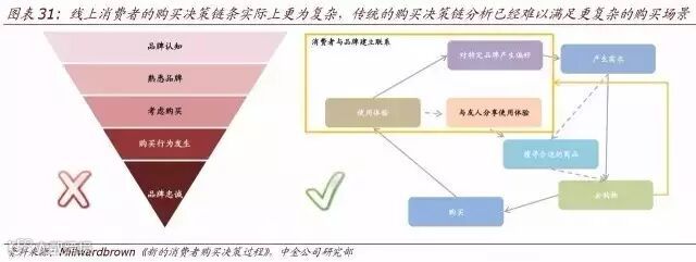 根据 MillardBrown2016 年的研究,传统营销通常认为消费者购买品牌是一个线性过程, 但现实中情况却要更为复杂,特别是互联网账号体系的出现,线上消费者在其他如社交 平台的分享同样会影响消费者的最终购买决策。此外,随着人均可支配收入的进一步提 升,影响消费者购买决定的变量同样变得更为复杂。除了最基本的对于性价比的考量, 粉丝效应、生活方式、特殊事件甚至对于环保的考量都有可能影响消费者最终的购买决定。